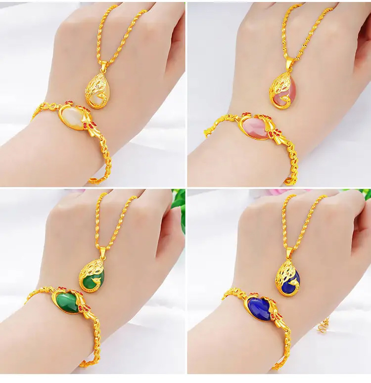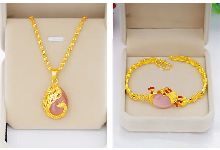 สร้อยข้อมือทองคำรูปนกยูงแบบ 2 ชิ้น ทองคำ 9999 พร้อมหินพลอย แย่งซื้อจำกัดเวลา ชุดละ ฿699 ผ่านการรับรองเชื่อถือได้ระดับสากล คุ้มค่ามาก